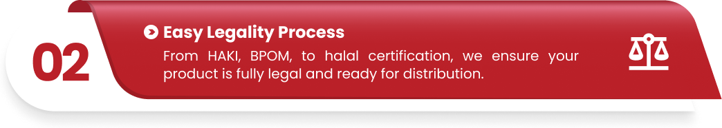From HAKI, BPOM, to halal certification, we ensure your product is fully legal and ready for distribution.